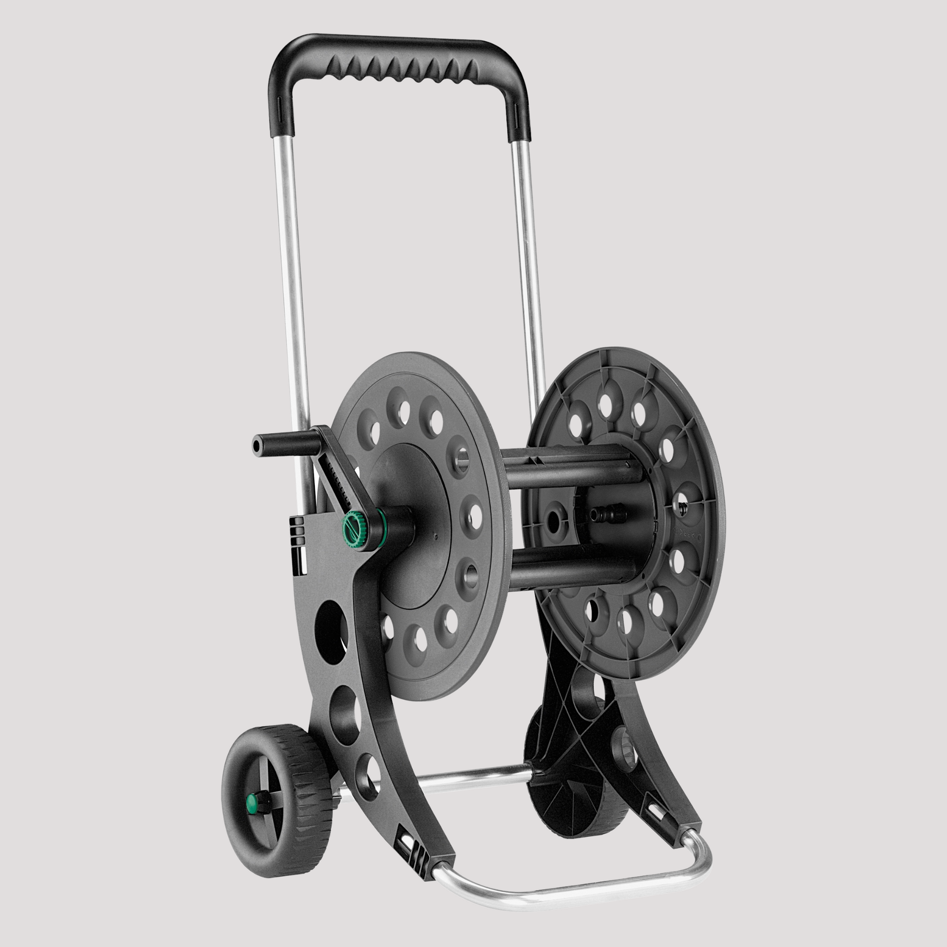 - Manico Ergonomico: Il carrello è dotato di un manico ergonomico in plastica, progettato per offrire una presa comoda e agevole durante l`uso. Questo rende più facile manovrare il carrello avvolgitubo attraverso il tuo giardino.