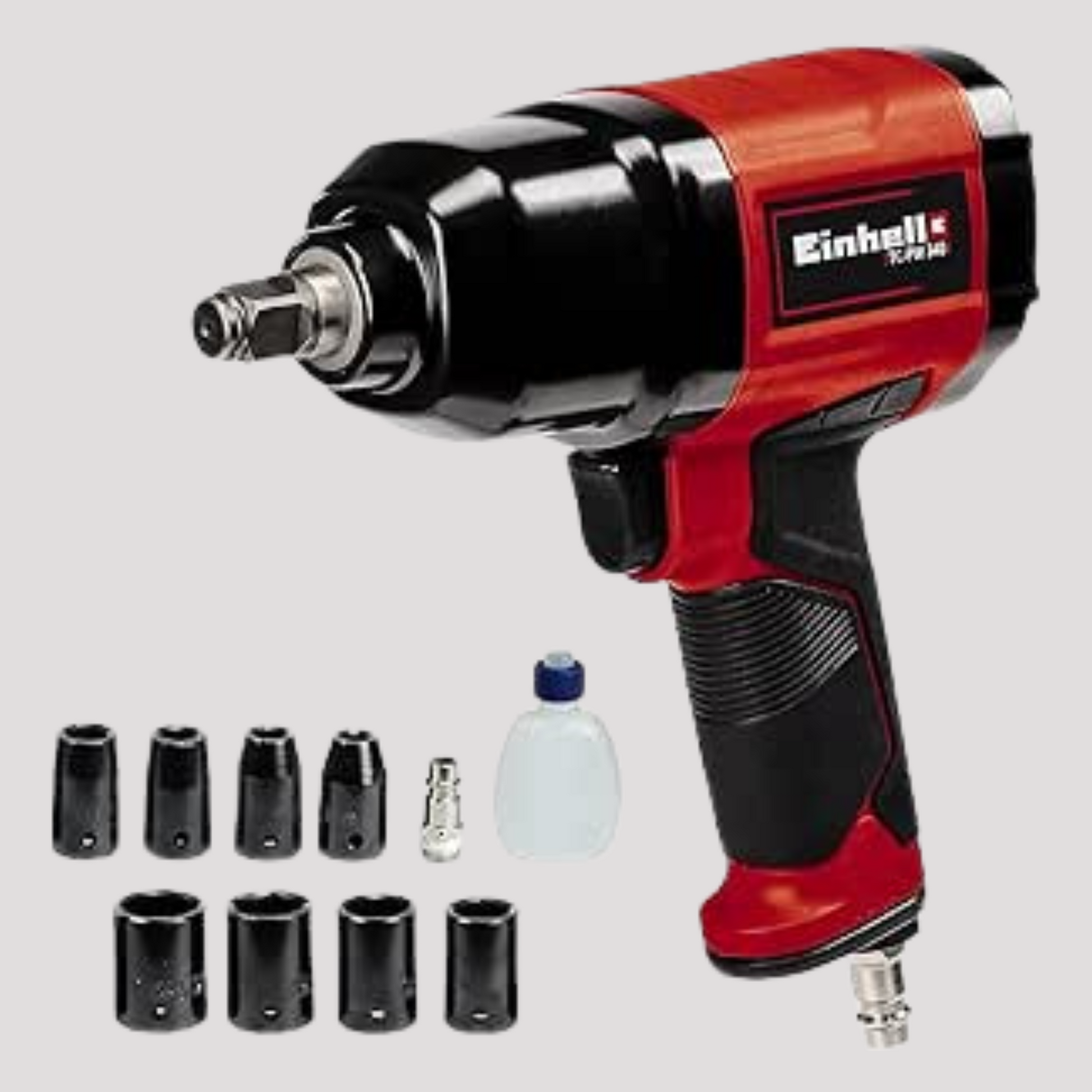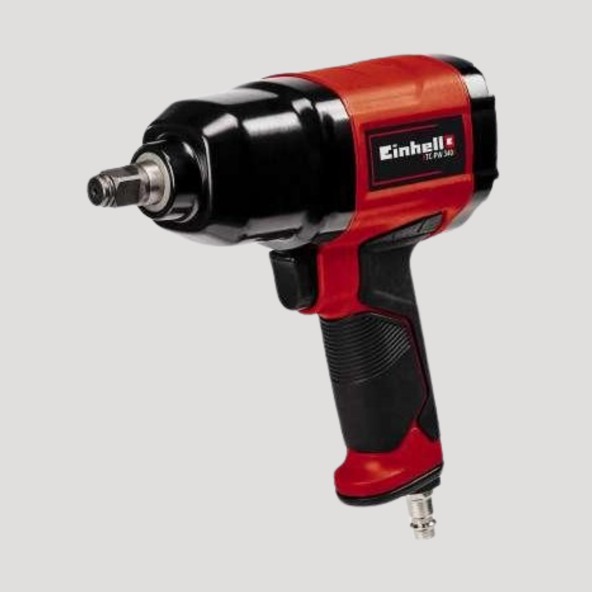 Einhell TC-PW 340 Avvitatore a impulsi pneumatico (torsione max 340 Nm, pressione max 6.3 bar, giri min. 7500, portata aria 142 L/min, incl. 8 inserti a bussola e boccetta d'olio)