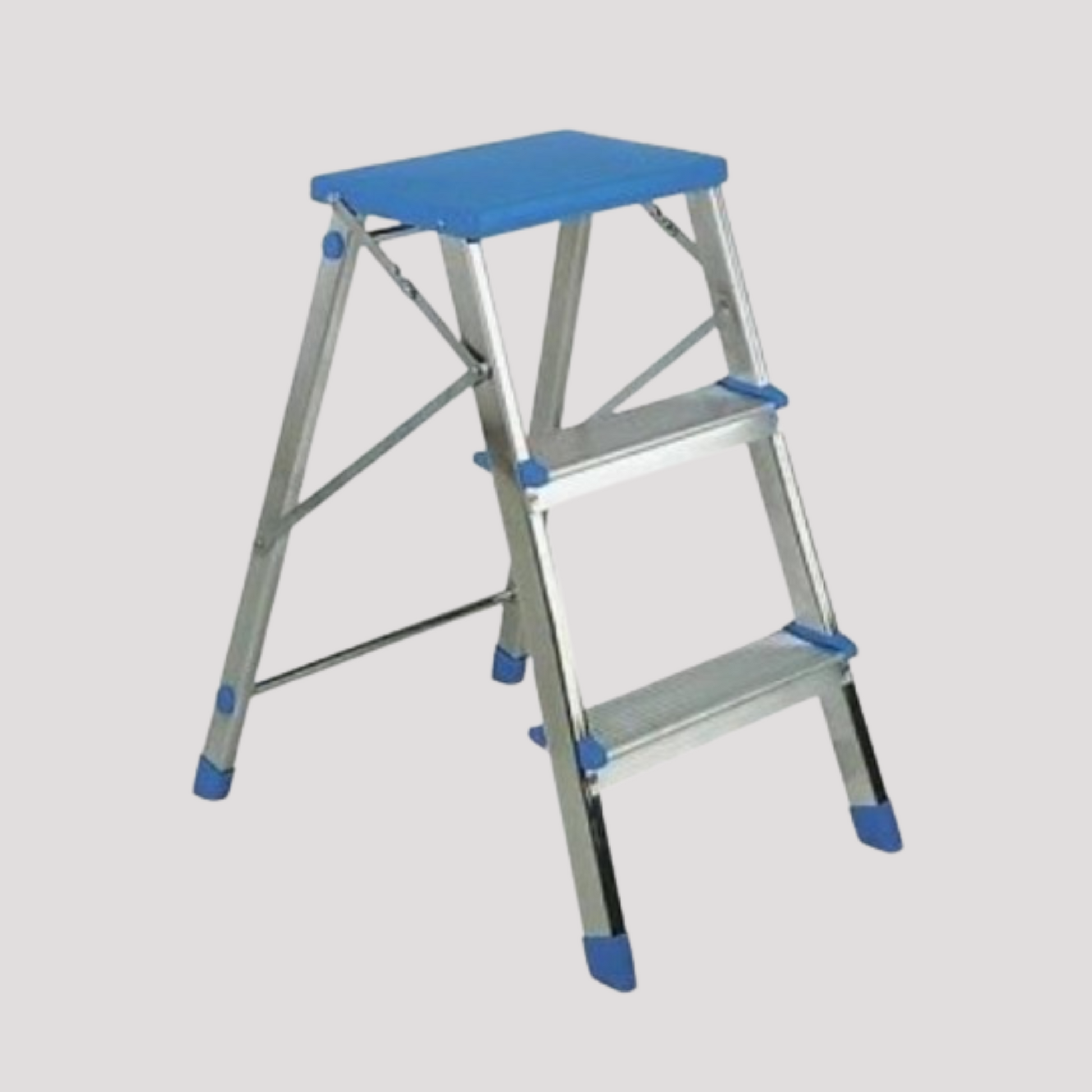 Sgabello in alluminio con parapetto di protezione e ampio piano d’appoggio da 345x240mm. Struttura che permette la salita frontale, dunqueuna salita più sicura e confortevole. Sezione profilo 40x20mm. Sezione gradino 80mm. Altezza mt 0,62 Peso kg 2,50